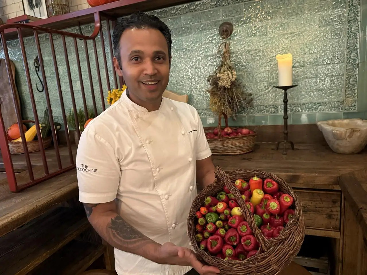 سرآشپز لری جایاسکارا محصولات برداشت شده از مزرعه روولر را نشان میدهد