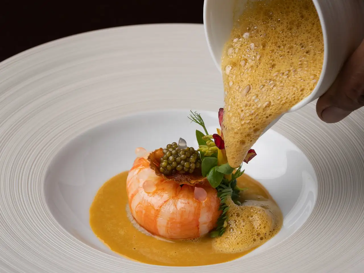میگوی بزرگ دابل ایکس ال از جزیره تانارا در غرب اسکاتلند در پی آن آمد. به آرامی در روغن میگو که از پوستههای آن درست میکنند، پخته شده بود. در زیر آن کنگر اورشلیم، ادامامه و جلبک دریایی و همچنین کمی خاویار قرار داشت. آبگوشت نیز از پوستهها درست شده و کمی ادویهدار بود.