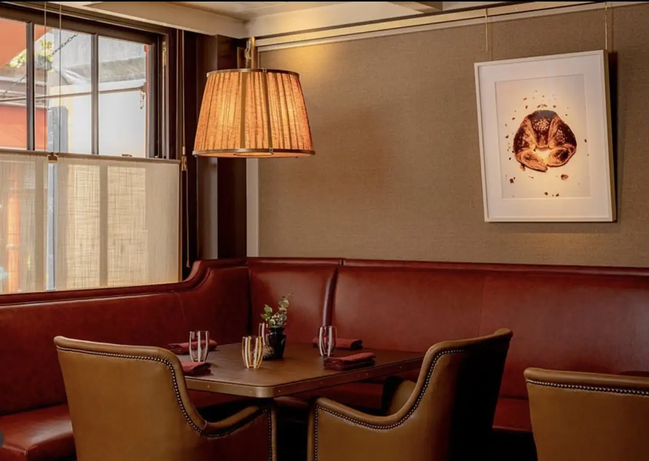 صندلیهای چرمی به رنگ قهوهای روشن در رستوران کوکوچین