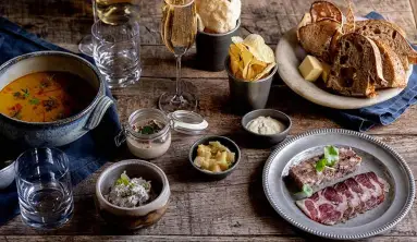 اما نقطه اوج تلاشهای آنها (و موضوع این نقد) فارمرز آرمز است، یک مهمانسرای سابق درجه دو که بخشهایی از آن به قرن هفدهم بازمیگردد. منوی این رستوران ویترینی ایدهآل برای محصولات فصلی مزرعه و مواد اولیه محلی است که از طبیعت جمعآوری میشوند.