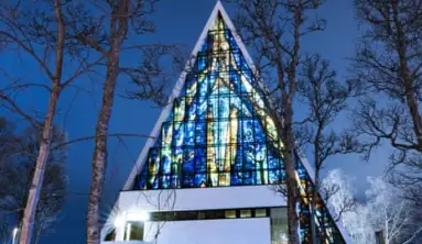 کلیسای محلی ترومسو، معروف به کلیسای قطبی، در شهر ترومسو یکی از نمونههای معماری مدرن است. ظاهر ساده و زیبای آن که با طبیعت اطراف هماهنگ است و یادآور خانههای سنتی سامیهاست، با فضایی داخلی که راحتترین نیمکتهایی را که تا به حال دیدهام دارد، تکمیل میشود. اثر موزاییک شیشهای خیرهکننده با عنوان «بازگشت مسیح» در یک انتها ممکن است برای همه جذاب نباشد، اما از نظر من پر از قدرت و شکوه بود. خروج از این ساختمان باشکوه پس از اجرای موسیقی ارگ، و سپس رویت شفق قطبی که در آسمان میرقصید، تجربهای شگفتانگیز بود.