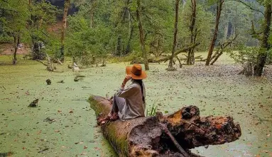 حــرف هــای مــرد مانــدن کنــار تــالاب را برایــم جــذاب تــر میکنــد. بعــد از رفتــن مــرد محلــی، کنــار دریاچــه قــدم زدم و بــه آب و جانوارانــی کــه نمیدیــدم امــا روی آب مســیر حرکتشــان معلــوم بــود نــگاه میکــردم و بــه صداهــا گــوش میــدادم، ســعی میکــردم همــه را در ذهنــم ثبــت کنــم. روز را کنــار دریاچــه و زیبایــی هایــش گذرانــدم. تمــام ایــن مــدت بــه دریاچــه نــگاه میکــردم و ســیر نمیشــدم از زیباییــش. بــا درخــت هــای مــرده نــگاه میکــردم و بــا خــودم میگفتــم یعنــی چــه روزگاری اینجــا گذشــته؟ زیــر ایــن آب چــه شــگفتی هــای دیگــری پنهــان شــده؟ چــه مردمانــی از اینجــا گــذر کــرده انــد و چــه حکایــت هایــی بــرای ایــن جــا ســاخته انــد؟ هــوا کمــی ســرد شــده بــود و از صــدای زوزه ی حیوانــات و صداهــای عجیــب دیگــری کــه میشــنیدم دیگــر واقعــا کــم کــم ترســیده بــودم. هــر صــدای خــش خشــی کــه از پشــت ســرم مــی امــد فکــر میکــردم حــالا یــک روح مــی آیــد ویقــه ام را میگیــرد و میــان تــالاب پرتابــم میکنــد و حوالــه ام میکنــد بــه کــرام الکاتبیــن! اهنــوز هــوا گــرگ و میــش بــود کــه وســایلمان را جمــع کــردم و راه برگشــت را در پیــش گرفتیــم. راه برگشــت از طبیعتــی بــی انــدازه زیبــا و بــی نظیــر؛ یــک ســرزمین رمــز آلــود و شــگفت انگیــز. بازهــم بایــد برگــردم. شــاید شــگفتی هــای دیگــری کنــار ایــن دریاچــه منتظــرم باشــد.